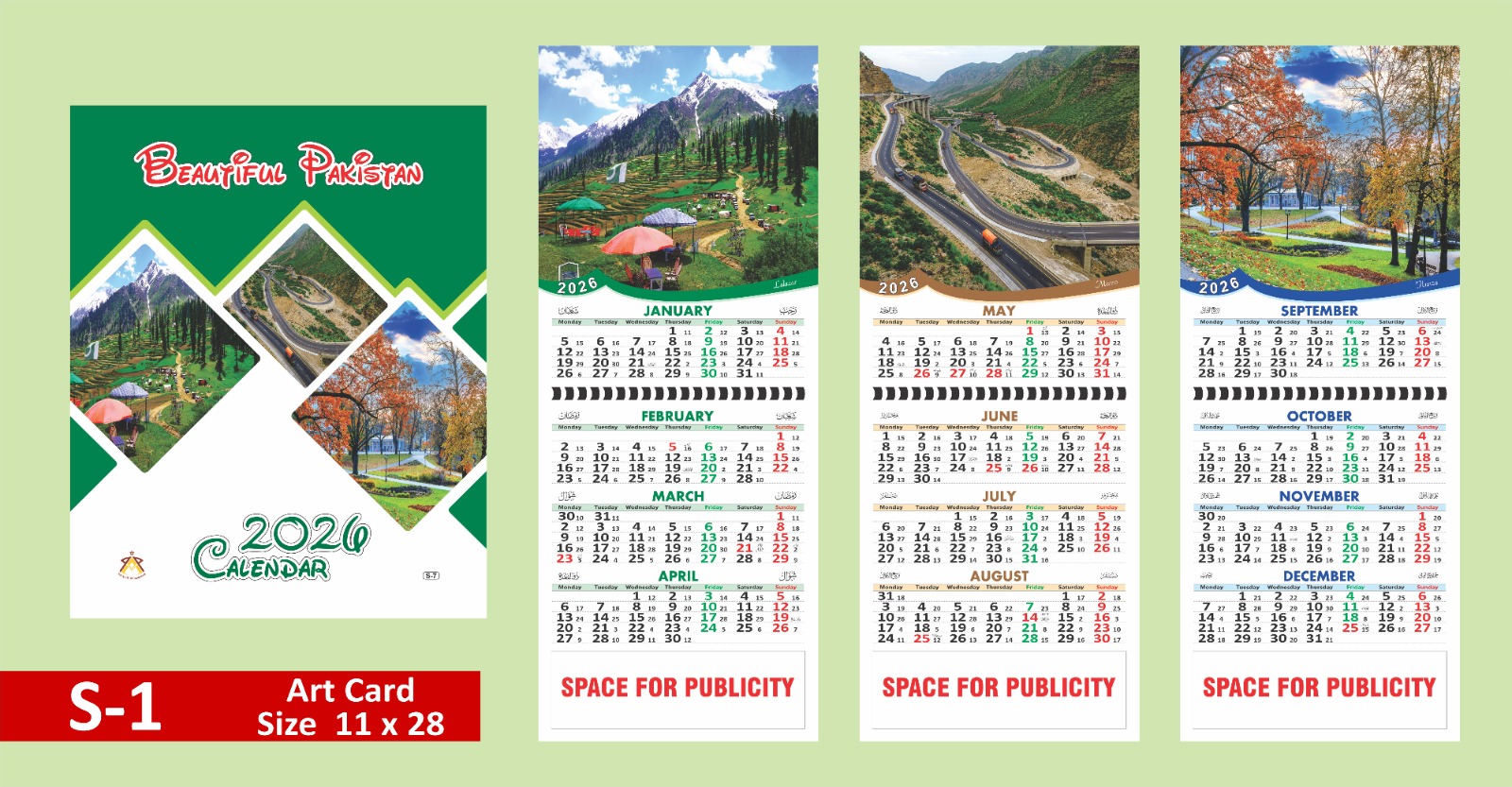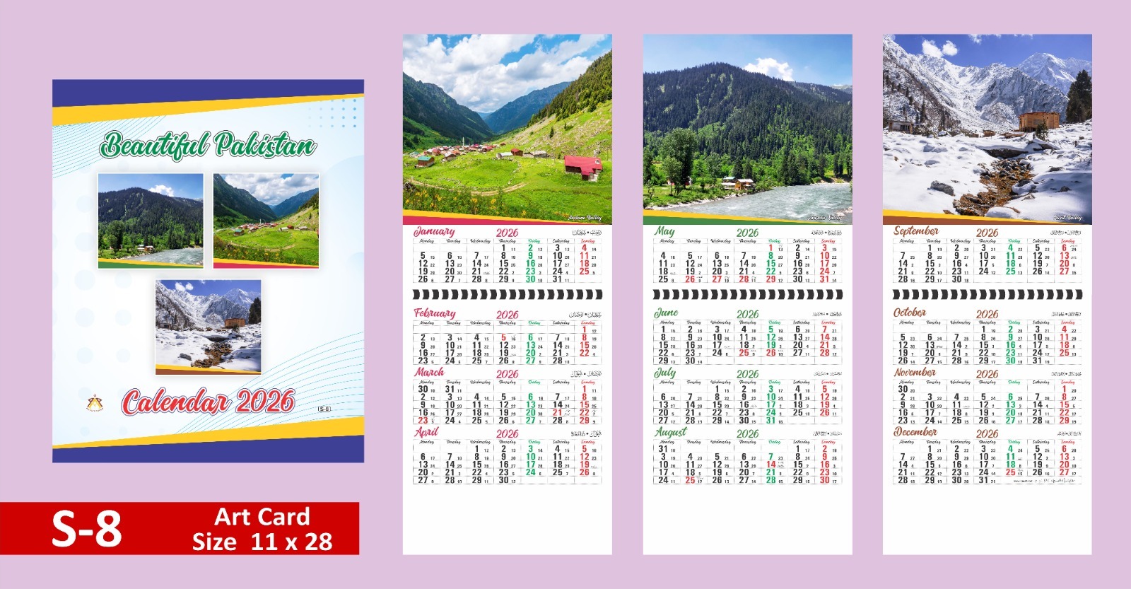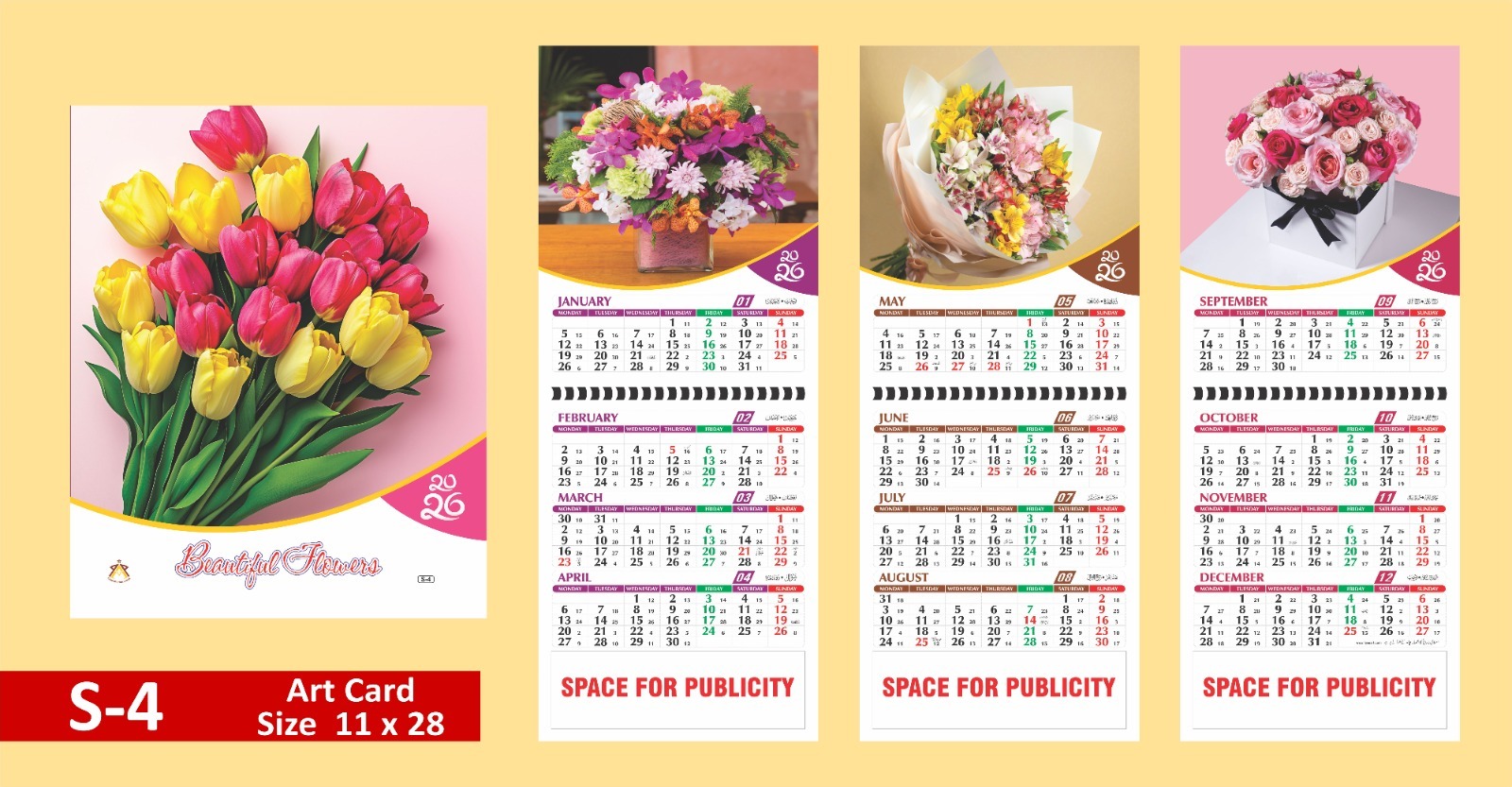 2026 Calendar S Series | 3 Page Card Calendar 4 months on a page